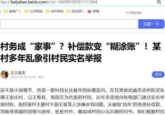 这不是小说情节,而是一群村民长达数年的执着追问。在甘肃省武威市凉州区河东镇王家庄村,以王维有、张国文为代表的村民,近年来连续向各级部门递交实名举报材料,指控该村主要村干部王某等人涉嫌多项问题。从被指“消失”的各类补偿款,到备受质疑的资格与选举,桩桩件件,叠加成村民心头沉重的问号。我们根据村民提供的举报材料,尝试梳理其中的核心争议。