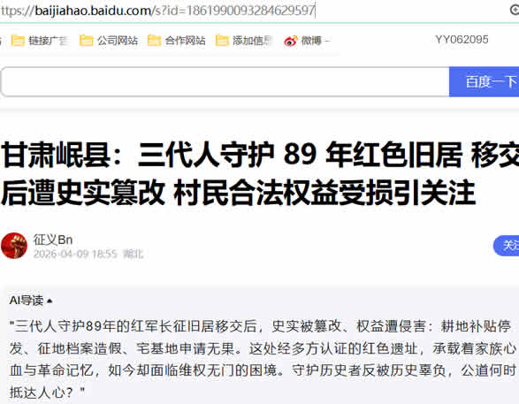 重要旧居,在主动配合政府完成产权移交后,竟遭遇革命史实被篡改、耕地补贴被克扣、征地档案被篡改、宅基地申请被搁置等一系列问题。村民多次向县、镇、村三级部门合理反映,均未得到有效处置,此事不仅触及红色文化保护底线,更让基层群众合法权益受到侵害,引发社会广泛关注。